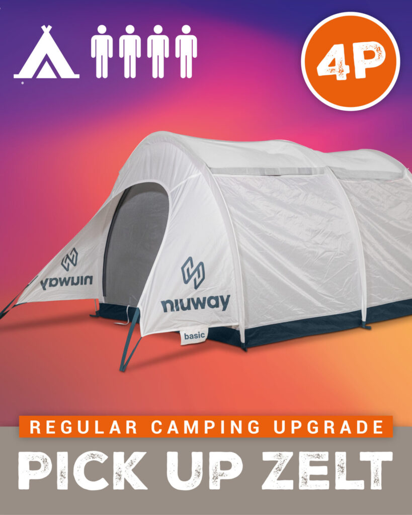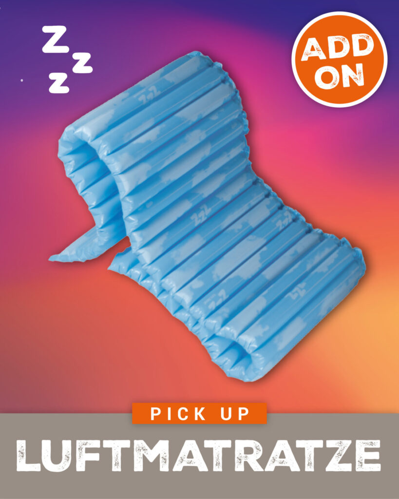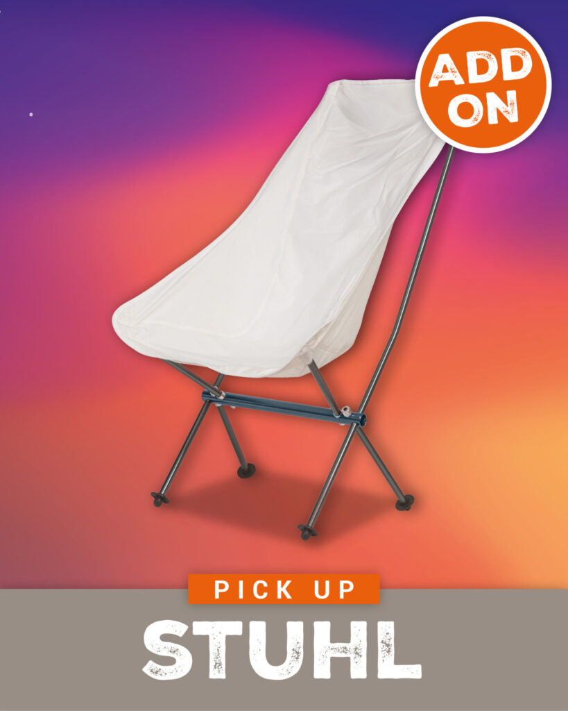 Du hast keine Lust dein eigenes Zelt mitzuschleppen oder hast keine Camping Ausstattung? Kein Problem! Miete dir dein Equipment ganz bequem vor Ort und bau es selber am Campingplatz auf. Ob Zelt, Pavillion, Stühle oder Luftmatratze – bei uns kannst du alles ausleihen, was du brauchst. So sparst du dir den Transport und reist entspannt an.
