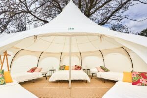 Erlebe das Open Beatz Wochenende von Donnerstag bis Montag im 4 Personen Lotus Zelt (5 Meter Durchmesser) im neuen Deluxe Camping Bereich.